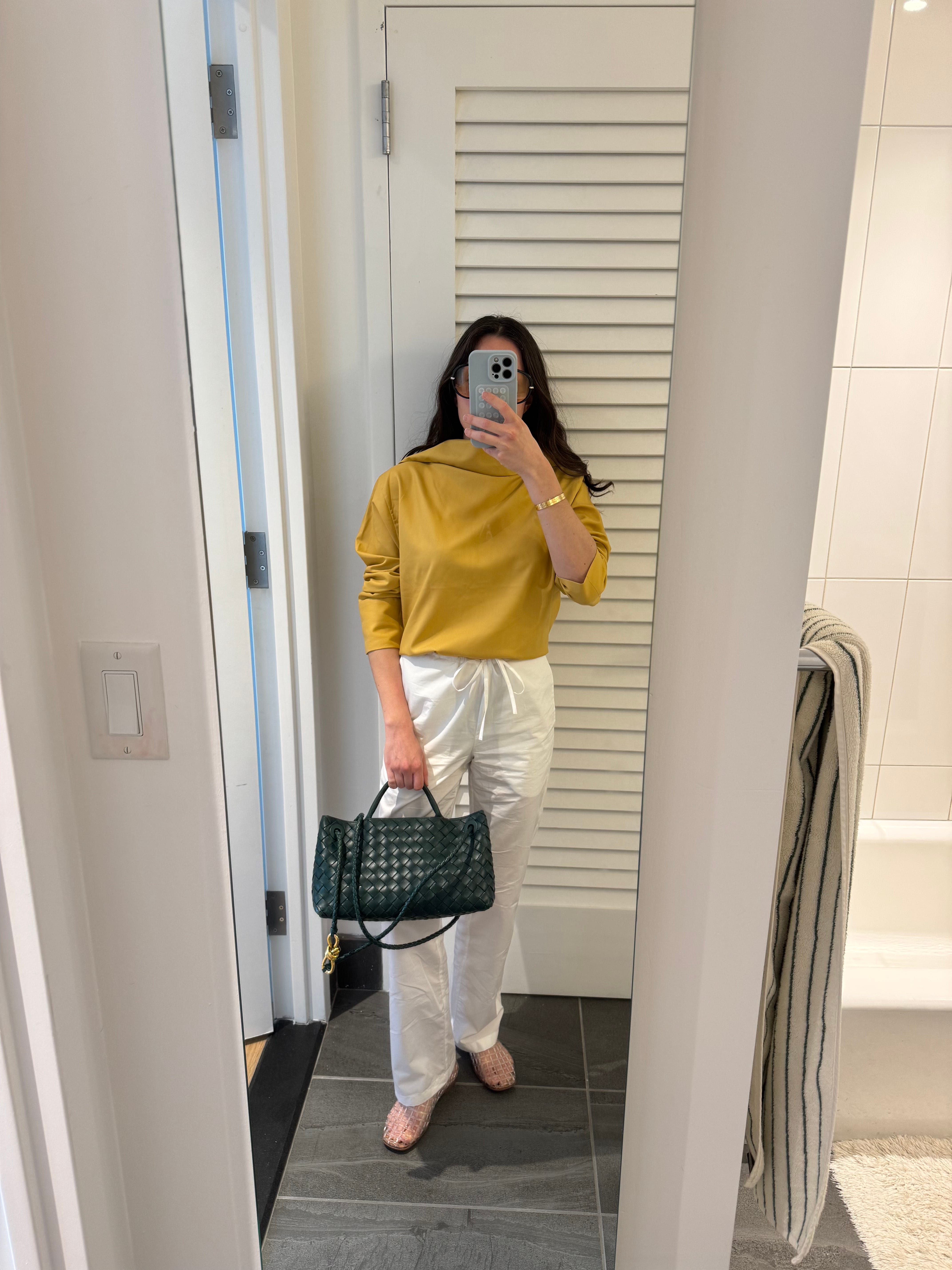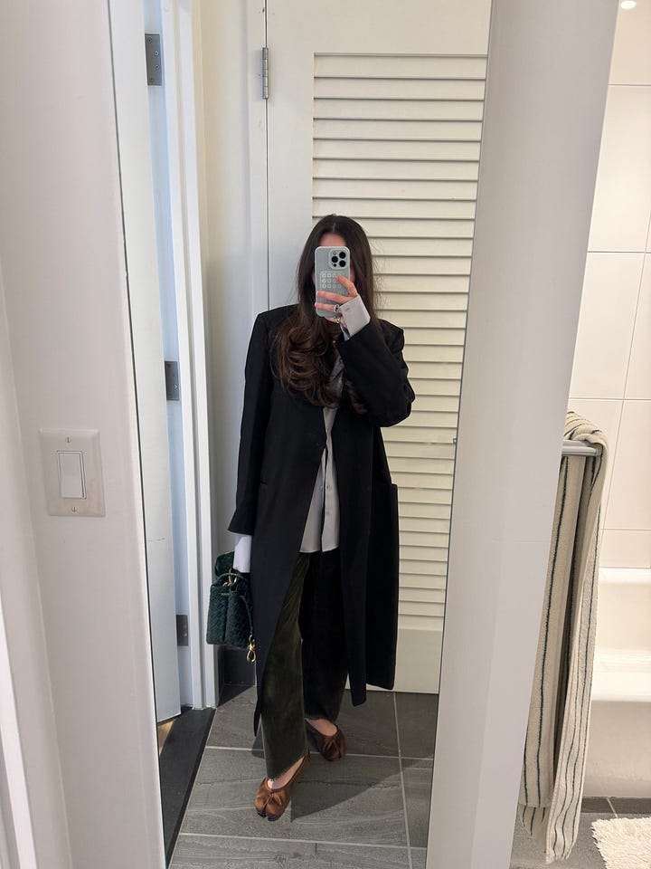 Coffee meetings + WFH — where it was incredibly sunny so I dressed for spring, but got out side and realized I still needed a coat.. so my trusty Jil Sander came with me!
